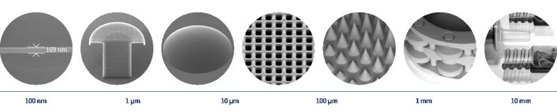 Az UpNano NanoOne platformja lehetővé teszi a mikrométer alatti és centiméteres közötti méretű, és akár 40 milliméteres magas szerkezeti részletek nyomtatását © UpNano GmbH