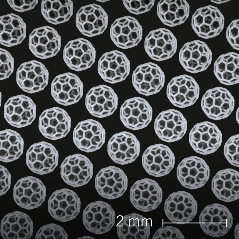 A struktúrák, amelyeket az UpNano a 3D nyomtatóval előállít, olyan kicsik, hogy sem szabad szemmel, sem erős optikai mikroszkóppal nem azonosíthatók. A legkisebb nyomtatott szerkezetek csak pásztázó elektronmikroszkóp alatt válnak láthatóvá. Ezek egyfajta «apró gömbök» vagy porszemcsék, amelyek teljes átmérője csupán a milliméter töredéke. A szerkezetet alkotó rudak 100-szor vékonyabbak az emberi hajszálnál. Az ilyen struktúrákat például orvosi kísérletekben használják, többek között élő sejtek vázaként, vagy mikroszűrőként, mikrotűként vagy mikrolencseként.