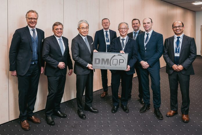 A Mitutoyo mostantól a DMG MORI Qualified Products (DMQP) partnerének számít. Balról jobbra: Christoph Grosch, a DMG MORI DMQP ügyvezető igazgatója, Alfred Geißler, a DMG MORI AG vezérigazgatója, Dr. Eng. Masahiko Mori, a DMG MORI elnök-vezérigazgatója, Henk Slotboom, a Mitutoyo Europe igazgatója/igazgatósági tagja, Shigeyuki Sasaki, a Mitutoyo Corporation Japan ügyvezetője és megbízott elnöke, Norbert Keil, a Mitutoyo Europe alelnöke/igazgatósági tagja, Michael Andessner, a Mitutoyo Europe igazgatója/igazgatósági tagja és Pralhad Thapa, a Mitutoyo Europe üzleti megoldásokért felelős vezetője.